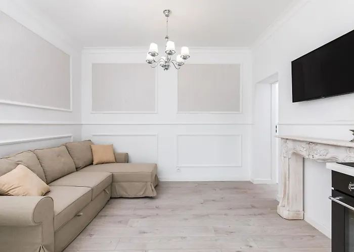 Glamour Apartment Mila With Balcony In Warsaw By Noclegi Renters oferuje aneks kuchenny oraz jadalnię i jadalnię na świeżym powietrzu, gdzie można delektować się posiłkami. Stacja metra Ratusz Arsenał znajduje się w odległości 950 metrów od obiektu i zapewnia dostęp do popularnych dzielnic Warszawy.